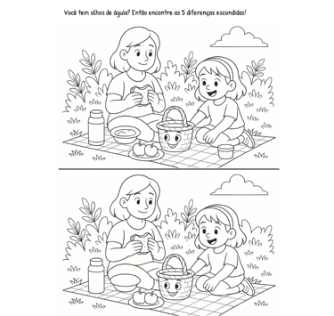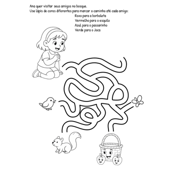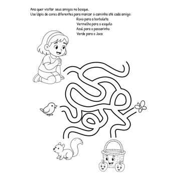 Caderno de atividades: jogos, desafios e desenhos para colorir.
