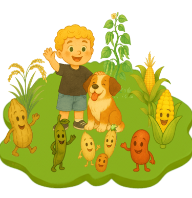 Oi, eu sou o Pedro! O Reino dos Grãos Saltitantes é cheio de energia, pulos e sabores incríveis. Em breve, vou te mostrar todas as maravilhas desse reino!